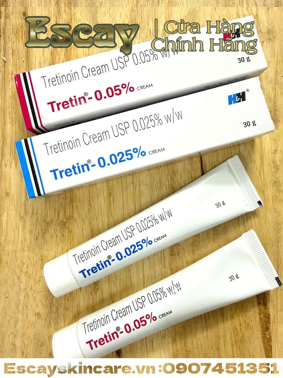 sản phẩm Tretinoin Cream USP với hai nồng độ khác nhau (0.025% và 0.05%),